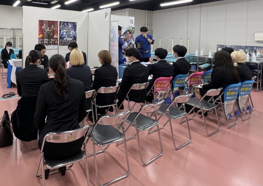 これまでの卒業生の主な就職先合計20社(鍼灸整骨院、医療法人、美容系治療院、医療系一般企業)にご参加いただき、東棟2階の8教室にブースを設置し、企業等の皆様から業界や自社の仕事内容についてお話いただきました。